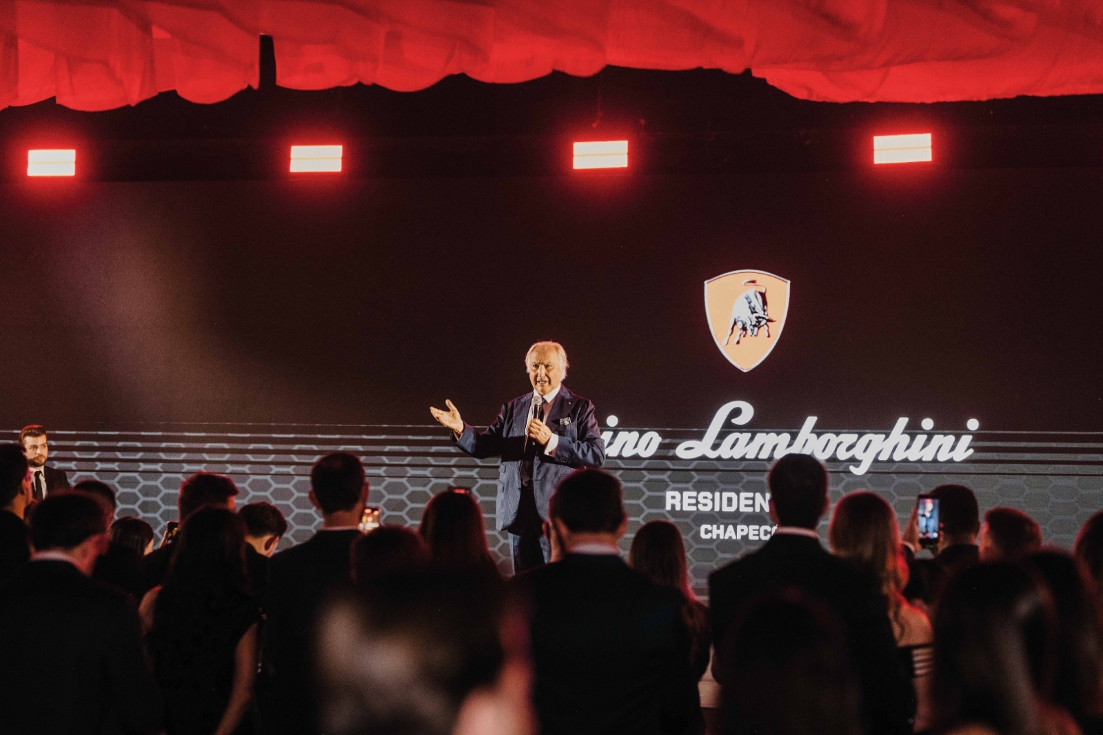 O lançamento oficial do Tonino Lamborghini Residences Chapecó foi celebrado em grande estilo, durante uma noite que reuniu mais de 600 convidados no Centro de Eventos Plínio Arlindo de Nes. Empresários, autoridades, clientes e imprensa acompanharam de perto a apresentação de um projeto que já nasce como um referencial arquitetônico. Entre os presentes, o próprio Tonino Lamborghini, acompanhado de Ginevra Lamborghini, vice-presidente e líder do projeto Healthy Lifestyle, e da chapecoense Angela Destri Krieger, diretora criativa da Tonino Lamborghini Total Living.